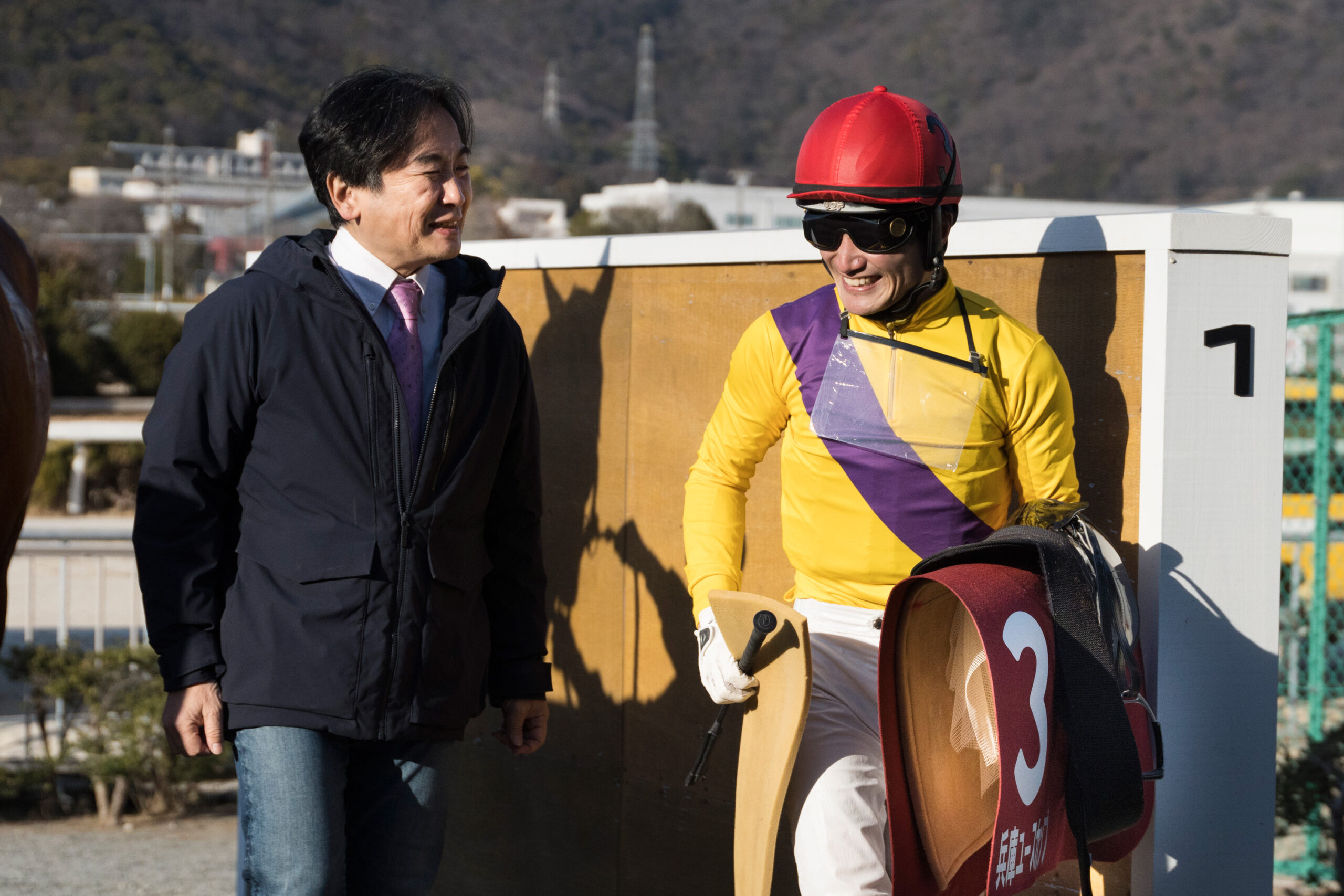 破顔一笑の諏訪貴正調教師は「本当に田野ちゃんがあいていてよかったよ~!ありがとう!」と殊勲の田野豊三騎手に感謝しきりの様子だった。