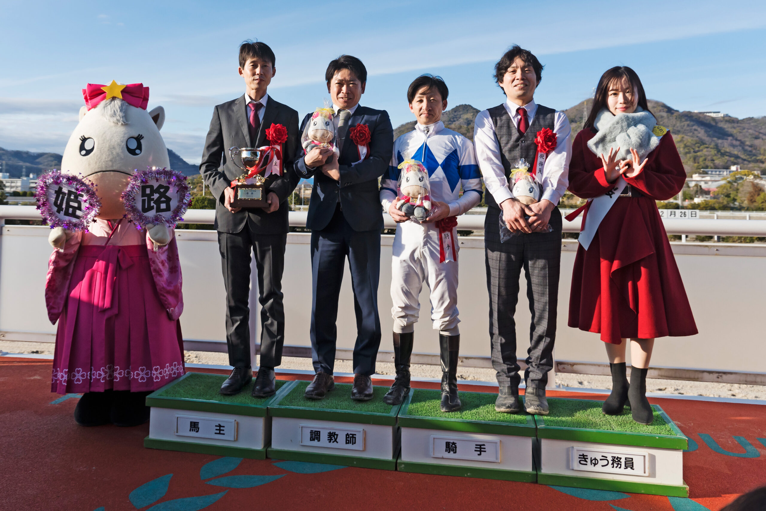 「20年ぶりにぐらいに姫路で重賞を勝ったんじゃないかなと思うんで、それを見届けていただいてありがとうございます」と、話していたが、実際は2021年2月25日にナリタミニスターで兵庫ウインターカップを制しており、5年ぶり2度目の姫路重賞制覇となった。