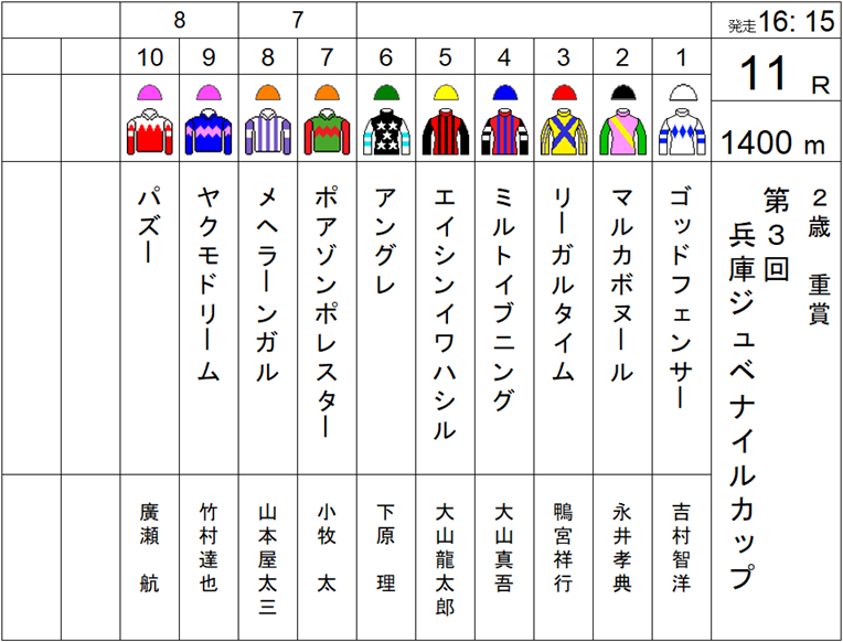 まだ数戦しか消化していない若駒、馬によっては2戦目の競馬、しかしながらそのレースぶりや時計面からもそう遠くない近未来に活躍を予感させるハイレベルなメンバー10頭が集結した。