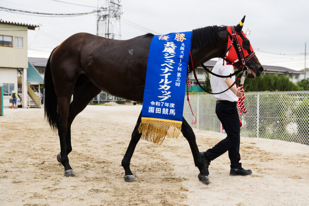 大山龍太郎騎手に言わせると「調教のときから反応の良い馬という印象があったのでレース感や適性という意味ではあまり心配していなかった」とのこと。やはり強者揃いの門別で戦ってきた成果もあるのだろうが、その血筋が示す兵庫の馬場適性というところも無視できない。人気の上では5番人気ではあったが「マイナス8キロという馬体重も特に気になっていなかったし、調教同様しっかりとした走りで返し馬をできたので手応えを感じていた」と案外、自信を持っての一戦だったのかもしれない。