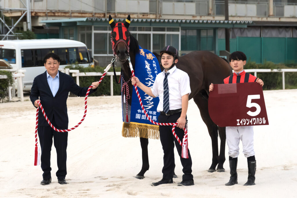 ◆エイシンイワハシルは門別3戦1勝。兵庫県競馬(園田)で1戦1勝。トータルでは4戦2勝。兵庫の一員となって即、重賞勝ち馬という肩書きがついた。