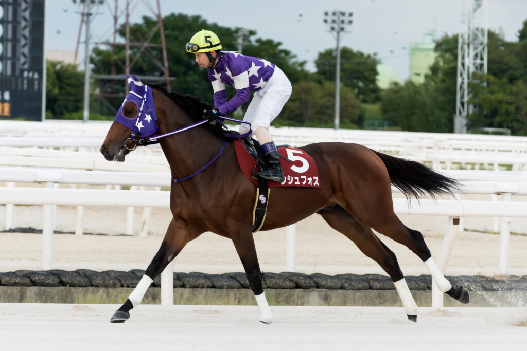 3番人気(単勝4.1倍)は船橋から参戦のシシュフォス。昨年のクラウンカップ(川崎)で重賞初制覇を挙げると、その後も南関東の3歳重賞戦線を賑わす存在として活躍をみせた。その後も堅実な走りを続け、前走のスパーキングサマーカップ(川崎)で2着と好走している。右回りは久々だが南関東の一線級と戦ってきた実績は侮れない。地元兵庫の下原騎手とのタッグで2つ目のタイトルを狙う。