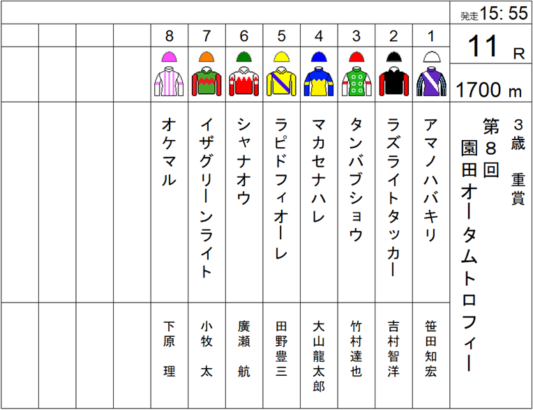 以下、トライアル2着のアマノハバキリが4番人気、古馬相手にB2連勝したタンバブショウが5番人気で続いた。
