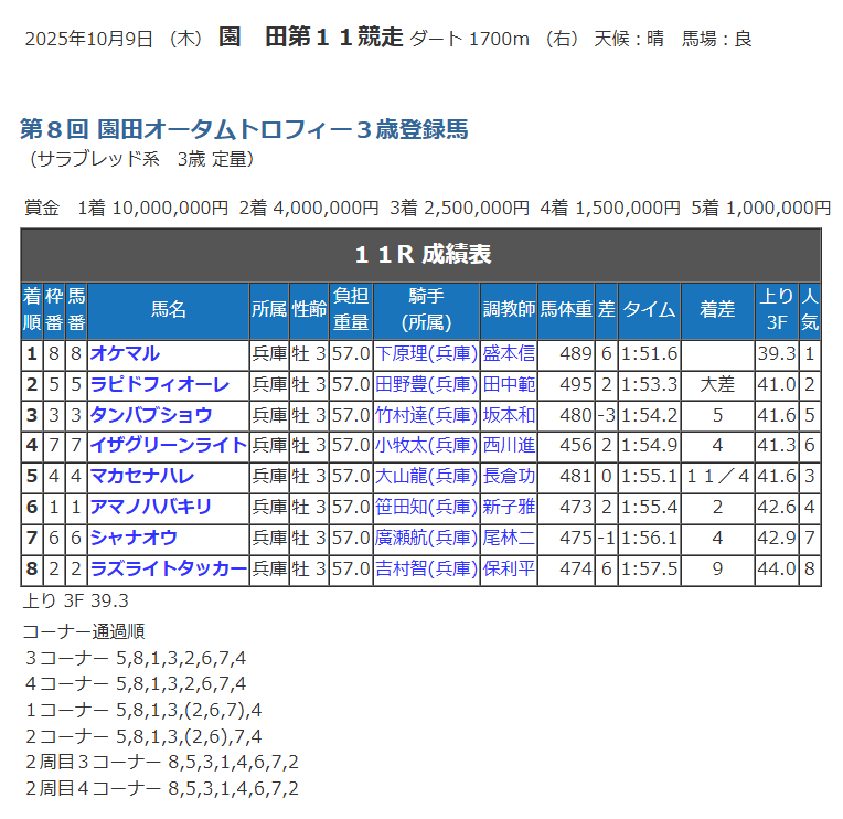 2025年 オケマル (菊水賞→兵庫優駿→園田オータムトロフィー) ←New!!