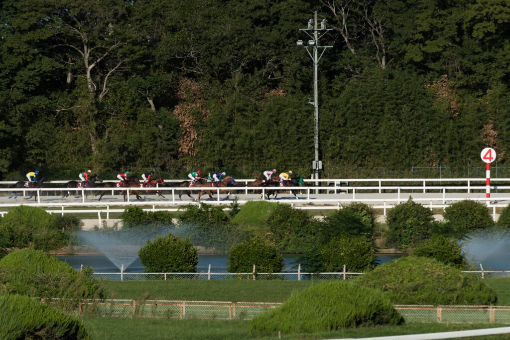 無敗の三冠馬誕生が期待されたこの日は、雲一つない秋晴れ。好天に恵まれ、馬場状態は「良」。