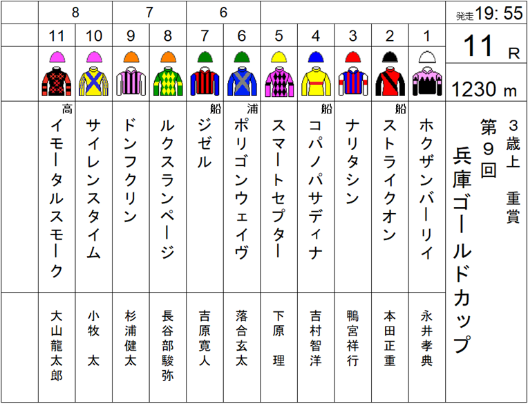 3番人気は、地元兵庫のサイレンスタイムで単勝5.9倍。